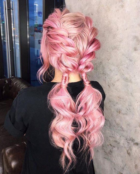 Imaginez combien de coiffures cool vous pouvez faire avec une couleur de cheveux rose tendre aussi inhabituelle. La première chose qui me vient à l’esprit est bien sûr l’image de Malvina. Les boucles bouclées dans une telle coiffure seront mignonnes.