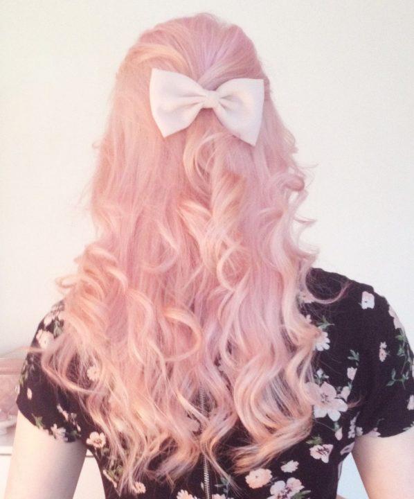 Les boucles mignonnes et volantes de couleur rose pâle conviennent aussi bien aux petites femmes qu’aux filles adultes. La couleur délicate ajoutera une humeur encore plus girly.