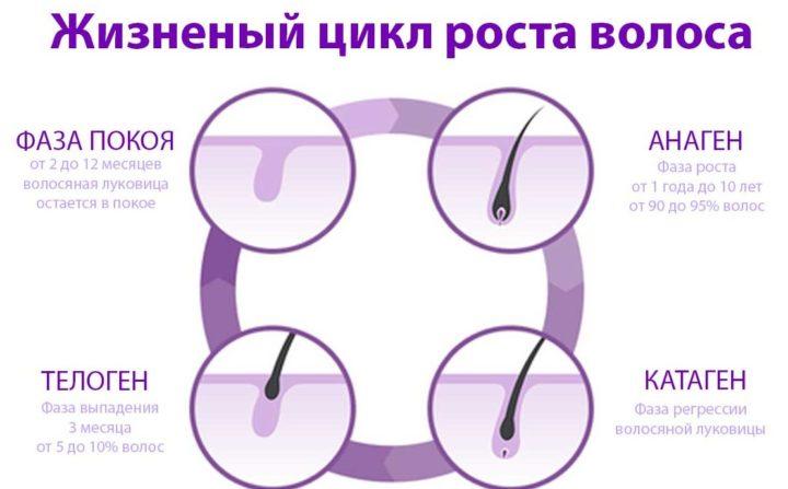 Le prolapsus est télogène, la phase finale. Le follicule pileux s’est pratiquement désintégré et les cheveux eux-mêmes peuvent tomber de la peau à tout moment, avec laquelle ils sont maintenus.