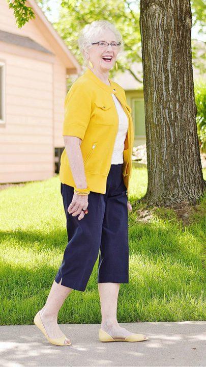 Il est tout à fait possible de s’habiller avec style à partir de 60 ans. Après tout, il vous suffit de combiner des choses contrastées. Par exemple, blanc et marron, vert clair et vert émeraude, blanc et jaune, gris et blanc.