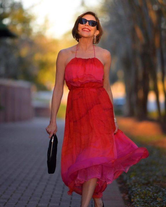 Les tenues élégantes sous forme de robes longues pour les femmes âgées de 60 ans et plus peuvent être très portées. Il peut s’agir de modèles classiques plus stricts ou de robes d’été en mousseline de soie, mais pas de couleurs fortement imprimées. Ce qui sera inapproprié à votre âge.