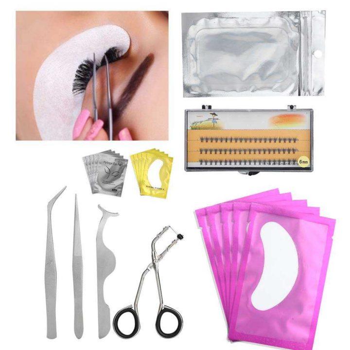 Pour coller de faux cils, vous aurez besoin de: des pincettes, des ciseaux, des cotons-tiges, des patchs, un miroir et de la colle à cils.