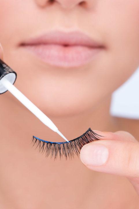 Appliquez doucement de la colle à la base de chaque touffe et collez-la entre vos cils. Commencez à coller à partir du coin interne des yeux et travaillez progressivement vers l’extérieur. Lorsque vous avez terminé, attendez 10 minutes que la colle soit bien prise et peignez les cils avec du mascara.