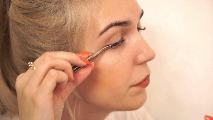 Avant de coller les cils, votre maquillage doit être terminé. Un tueur devrait recourber un peu vos cils. Ainsi, la courbure des cils sera identique aux faux et les cils seront dirigés dans un sens.