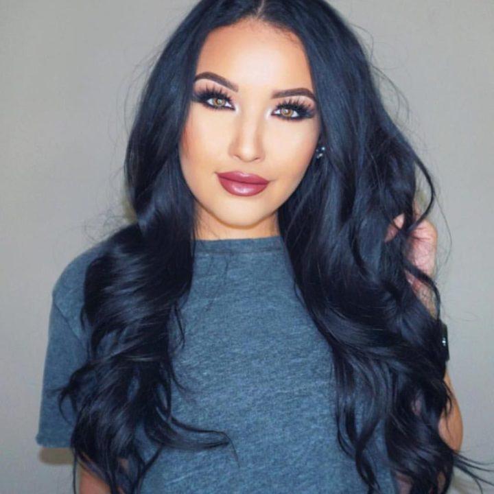 Les yeux bleus et les cheveux noirs sont rares, mais si vous n’êtes pas une brune naturelle, tout est possible. Ici, ce sera la solution idéale pour utiliser une nuance de graphite. Seulement, il n’éclipsera pas le bleu des yeux et sera magnifiquement combiné avec des cheveux noirs.