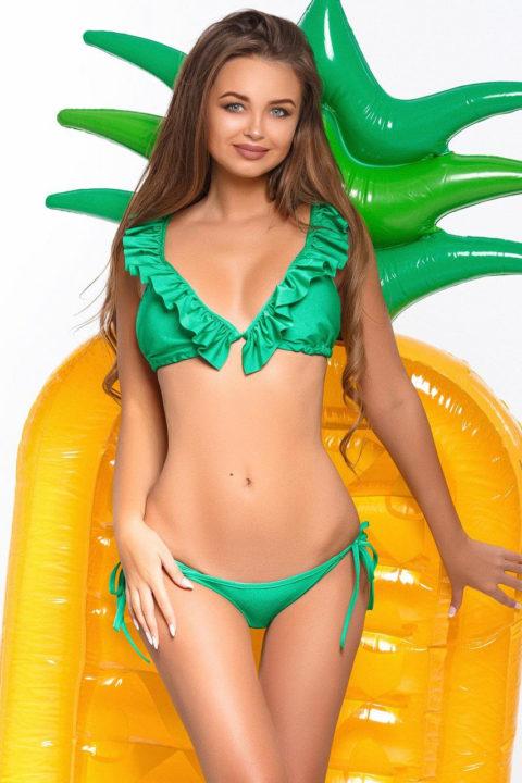 Pour que votre haut paraisse plus grand, vous devez choisir un maillot de bain dont le corsage a des volants ou des volants. Grâce à ce décor, un volume supplémentaire est créé au niveau de la poitrine. Cela aide à agrandir visuellement votre haut, ce qui rendra votre silhouette plus proportionnelle.