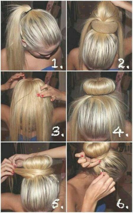 Peignez bien vos cheveux et rassemblez-les en une courte queue de cheval. Bien qu’ici, il soit déjà possible de souhaiter. Ensuite, vous avez besoin d’un bagel élastique spécial, qui est simplement conçu pour former des grappes de cheveux. Mettez un tel élastique à la base de la queue et les cheveux eux-mêmes doivent être étalés dessus. Ensuite, fixez les cheveux avec un mince élastique et cachez les brins parasites sous le beignet à l’aide d’épingles à cheveux.