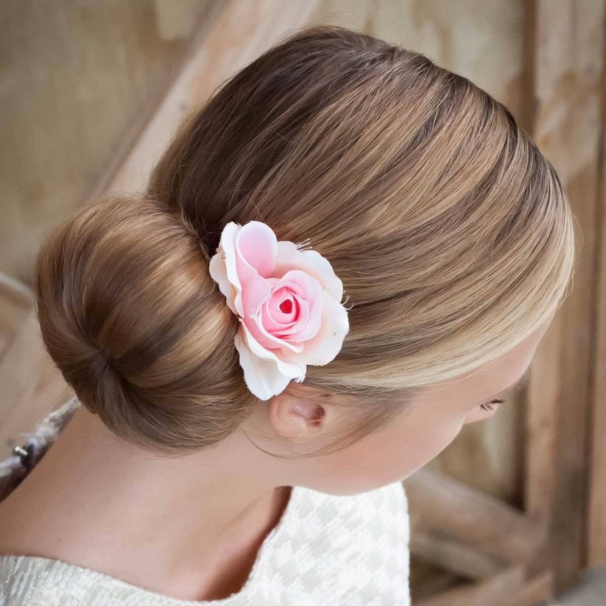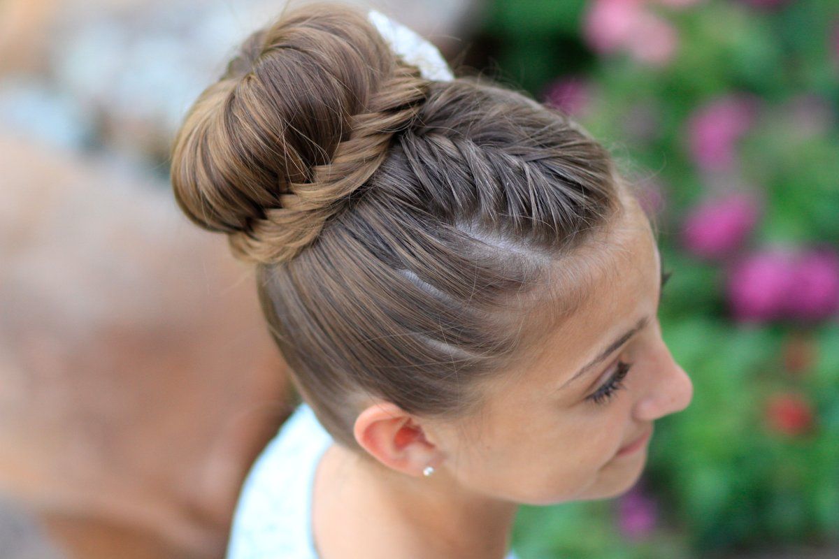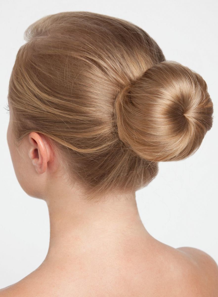 À sa manière, une coiffure appelée chignon de ballerine semble intéressante. Il ne convient qu’aux cheveux longs. Tout d’abord, les cheveux sont divisés en trois sections, comme le montre la photo. Rassemblez l’un d’eux dans une queue et réparez-le. Sur les deux autres, vous pouvez faire un tas pour rendre la coiffure plus volumineuse. Nous mettons un beignet sur la partie centrale des cheveux et répartissons uniformément toutes les mèches qui l’entourent. En plus, vous devez mettre un élastique qui correspond à la couleur. Fixez les pointes des cheveux avec des invisibles. Coiffez les mèches latérales de manière à ajouter de la légèreté et du volume à la coiffure.