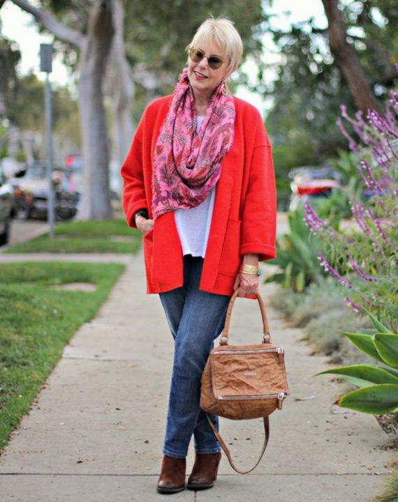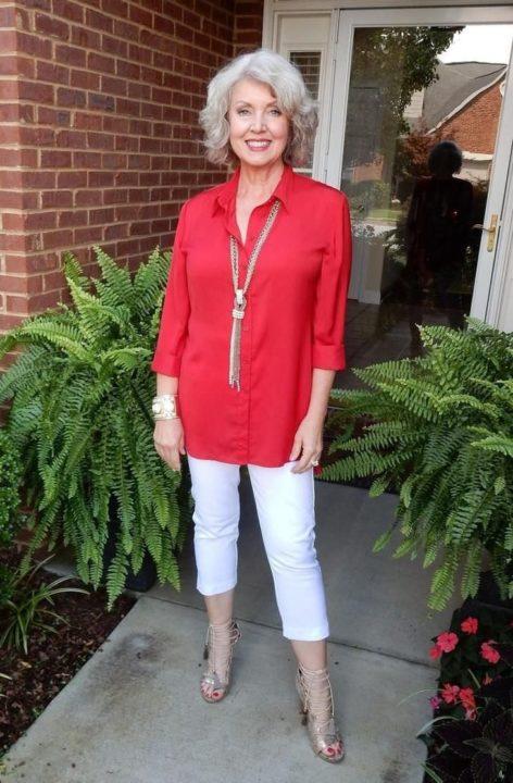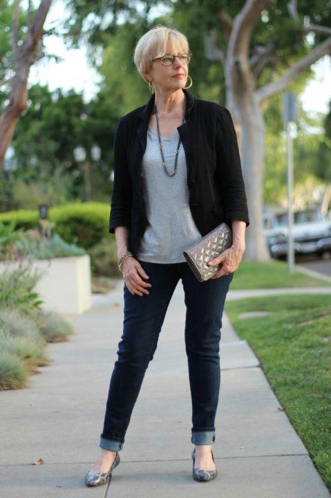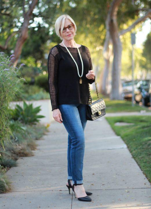 Oubliez également les jeans taille basse, qui sont extrêmement inappropriés pour les femmes de 50 ans et plus. Mais un jean raccourci à talons hauts sera un point fort intéressant de tout look.