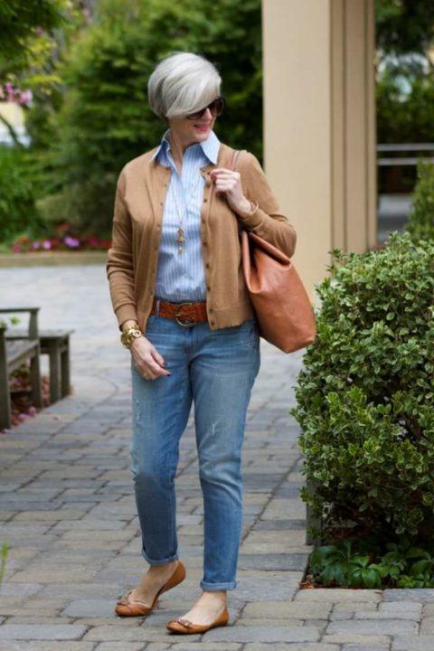 Si les jeunes filles peuvent se permettre un haut pour un jean, les femmes à l’âge adulte devraient respecter certaines règles. Pour créer un look moderne et beau avec un jean, il est recommandé de combiner des chemises amples blanches classiques, des cardigans, des blazers, des vestes.