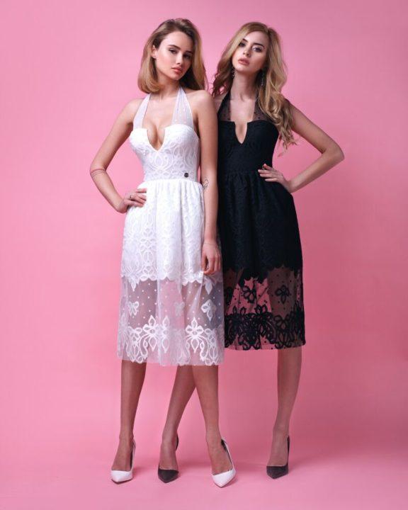 La robe parfaite! Les empiècements noirs, unis ou ajourés sur les côtés de la robe sont incroyablement fins et accentuent ainsi votre taille.