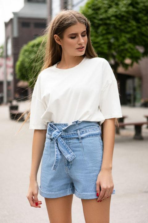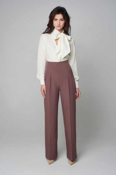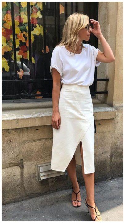 En outre, les concepteurs recommandent aux femmes de porter des vêtements à taille haute. Ils souligneront de manière séduisante la zone des hanches et, en raison de la taille haute, créeront un accent dessus. Mais pour cet effet, le haut doit être replié vers l’intérieur.
