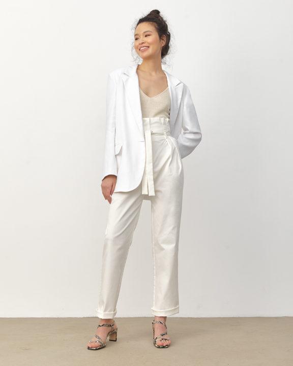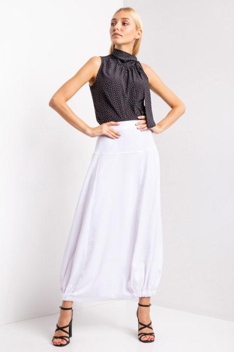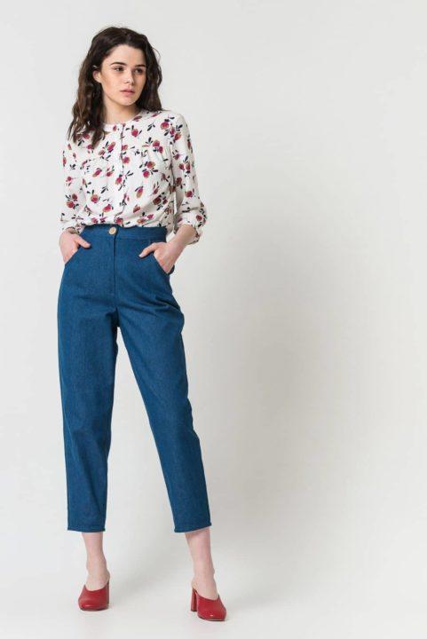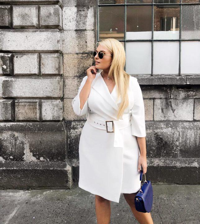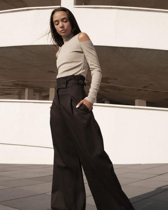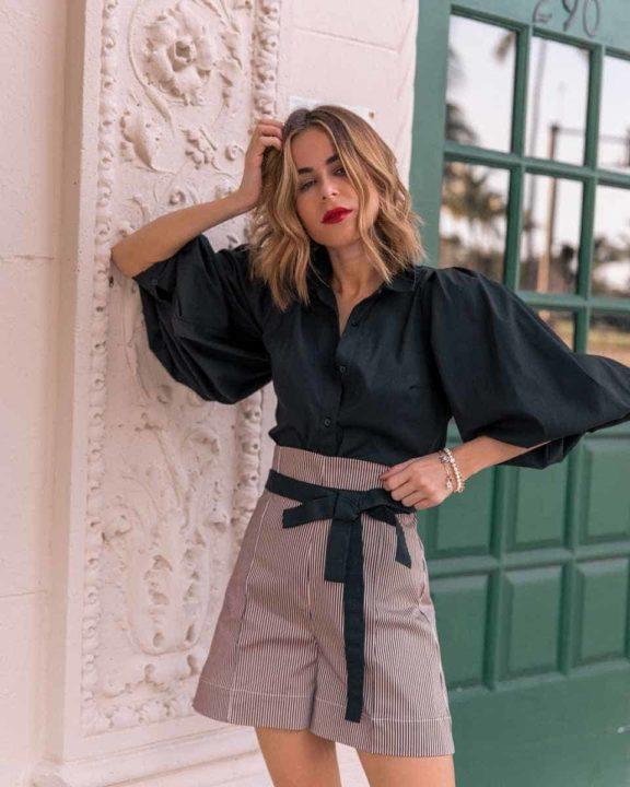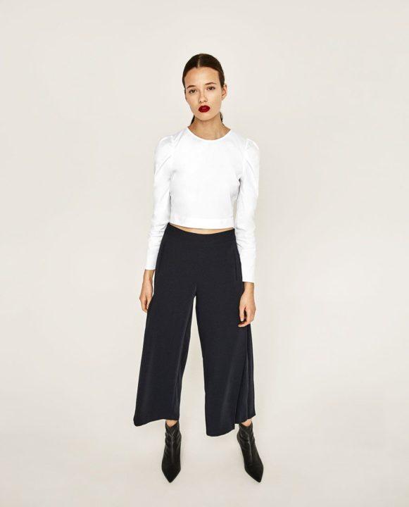 Le haut volumineux rendra visuellement le bas plus mince et créera également un accent gagnant à la taille. Mais le haut doit être replié vers l’intérieur pour créer l’effet souhaité.