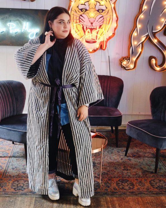 Il vaut toujours la peine de se concentrer ici sur le haut du corps, ce qui détournera l’attention des hanches. Une telle correction vous aidera à créer des foulards volumineux, et non des vestes en U profond. Recherchez les articles avec des lignes verticales ou des rayures. Il peut s’agir d’une ou de plusieurs lignes. Ils rendront visuellement votre taille légèrement plus élevée et votre poids moins.