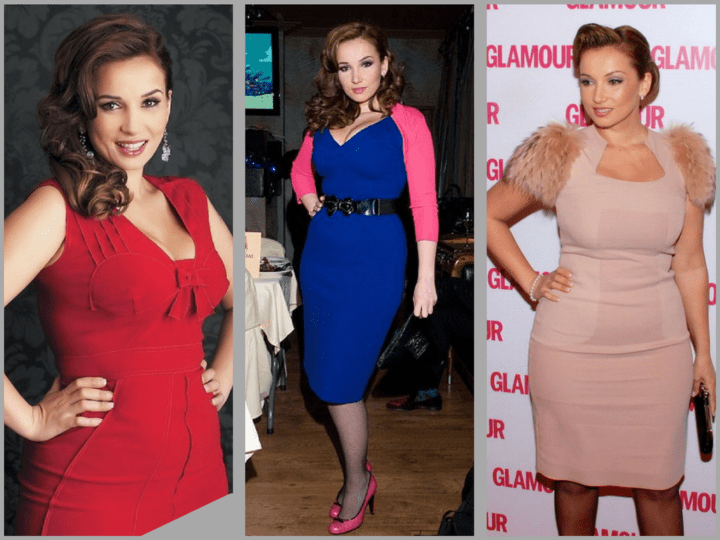 Ici, mettez toujours en évidence la taille pour rendre la silhouette plus harmonieuse et rétrécir visuellement la ligne des épaules. L’accent sur la taille peut être fait grâce à des couleurs contrastées, à l’aide de chemisiers ajustés, de corsets, ainsi que de l’utilisation de ceintures.