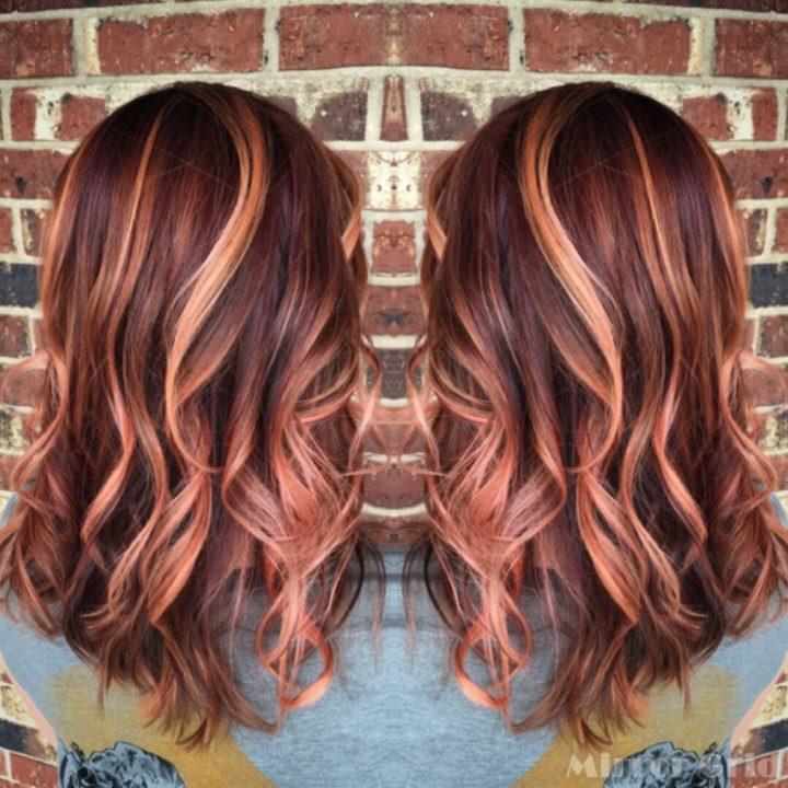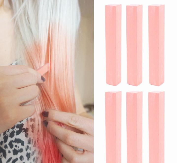 Si vous ne voulez pas vous séparer de votre nuance de cheveux habituelle, vous pouvez simplement y ajouter quelques mèches de couleur pêche. Cela rafraîchira visiblement la masse globale de la couleur des cheveux. Et si vous voulez juste essayer une telle couleur, alors les crayons de couleur pour la coloration conviennent ici.