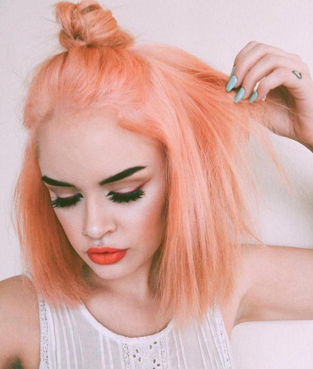 Pour une couleur de cheveux aussi inhabituelle, vous avez besoin d’une définition de l’audace. Jetons un coup d’œil à quelques options pour obtenir une teinte pêche luxueuse.