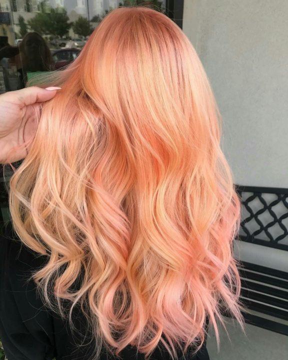 Pour les cheveux longs, la couleur pêche sera une très belle solution. Cette couleur ajoutera de la légèreté à la tendresse. Surtout si vous le combinez dans une coiffure avec de grandes boucles légères.