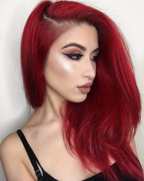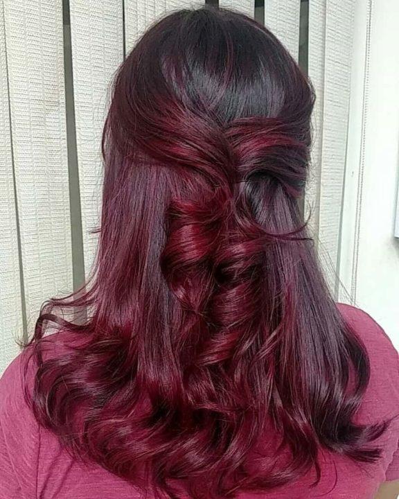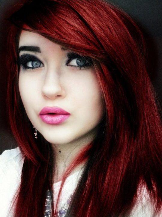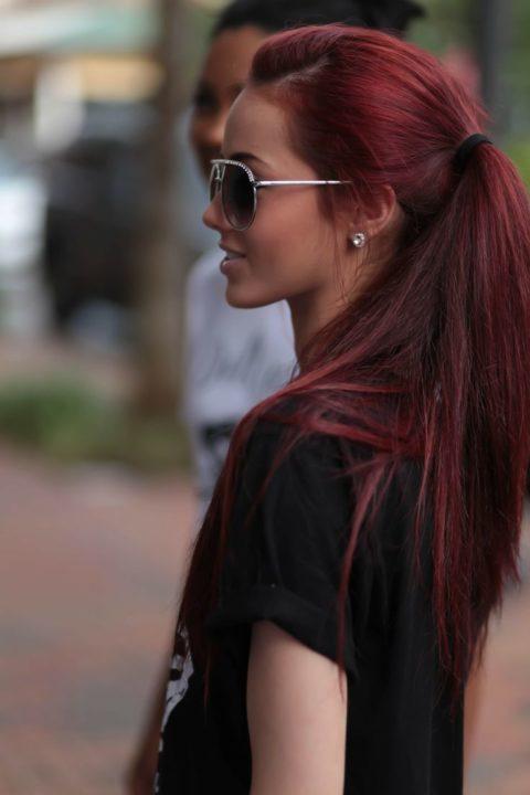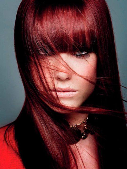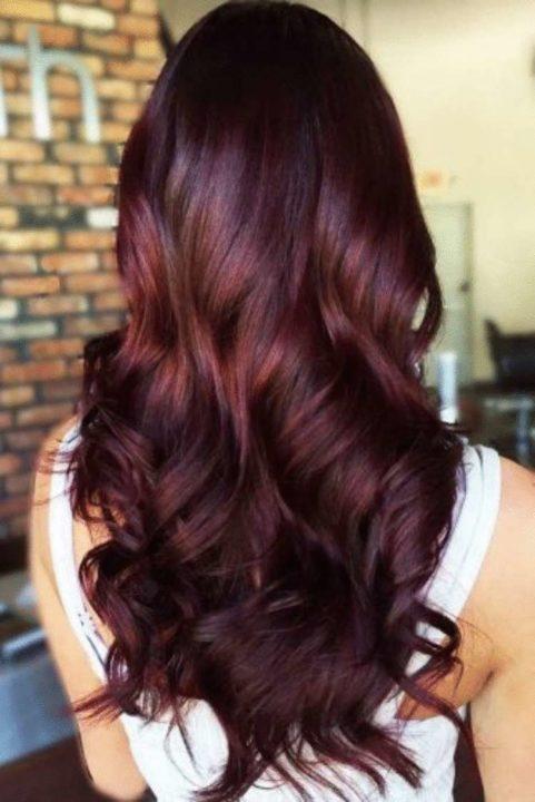 La couleur rouge foncé a un ton rouge profond en sourdine avec l’ajout d’une teinte brique. Cette couleur de cheveux peut parfaitement convenir aux filles à la peau blanche, en porcelaine et aux filles basanées.