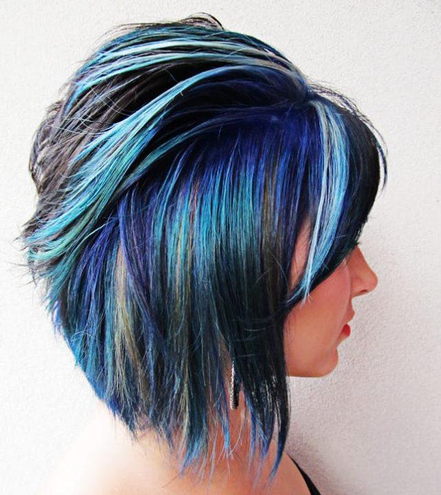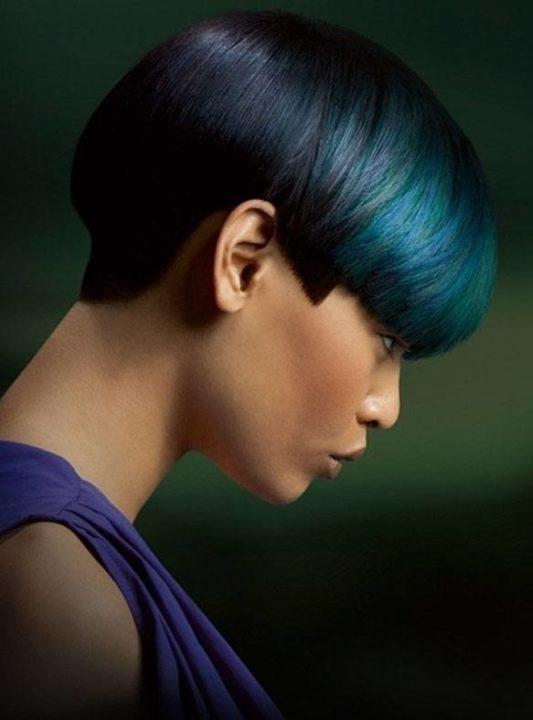 Vous pouvez choisir une coupe de cheveux bob, un bob allongé, un bob, ainsi qu’un bob-bob. Si vous avez les cheveux très courts, il est préférable de choisir des coupes de cheveux courtes de lutin, un garcon, une sesson et un caprice. Le bleu-noir scintille très bien au soleil, permettant aux cheveux courts de paraître très à la mode et élégants