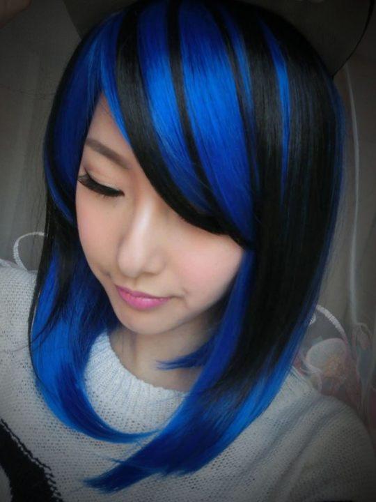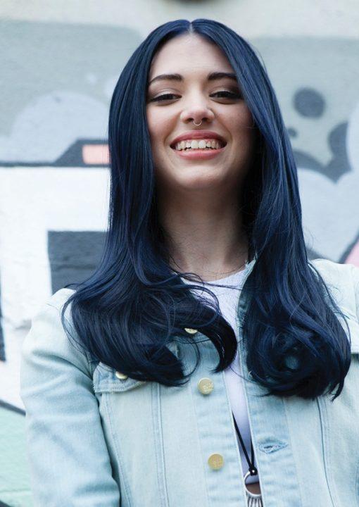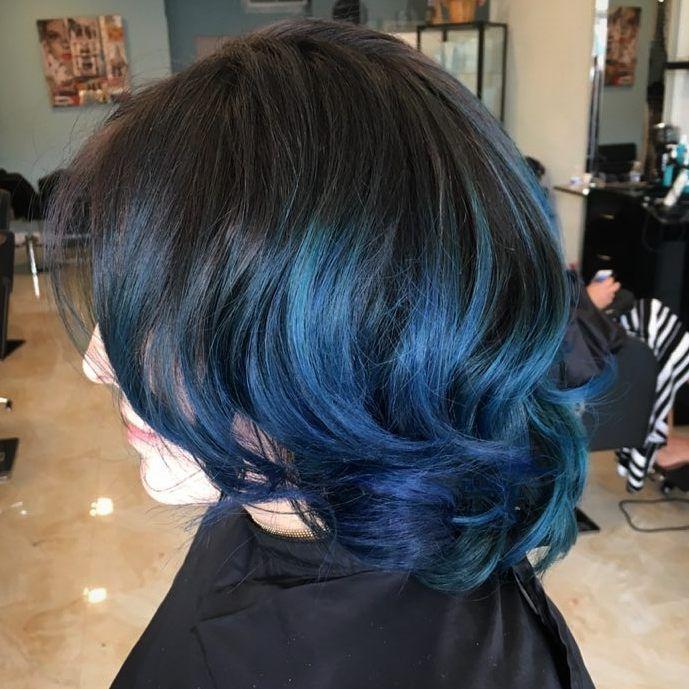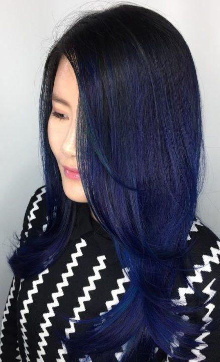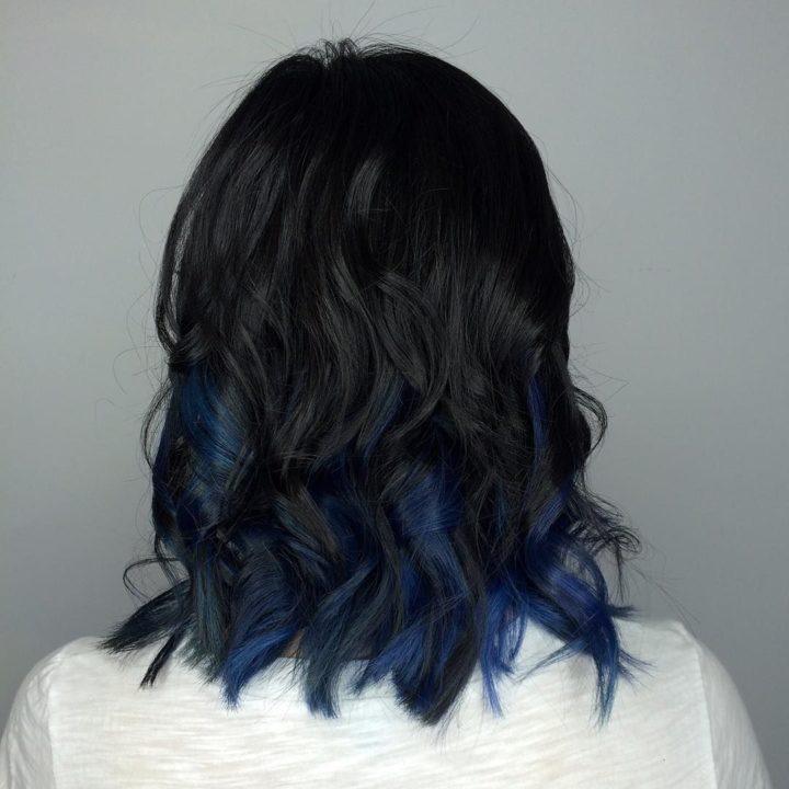 Couleur bleu-noir pour différentes longueurs de cheveux