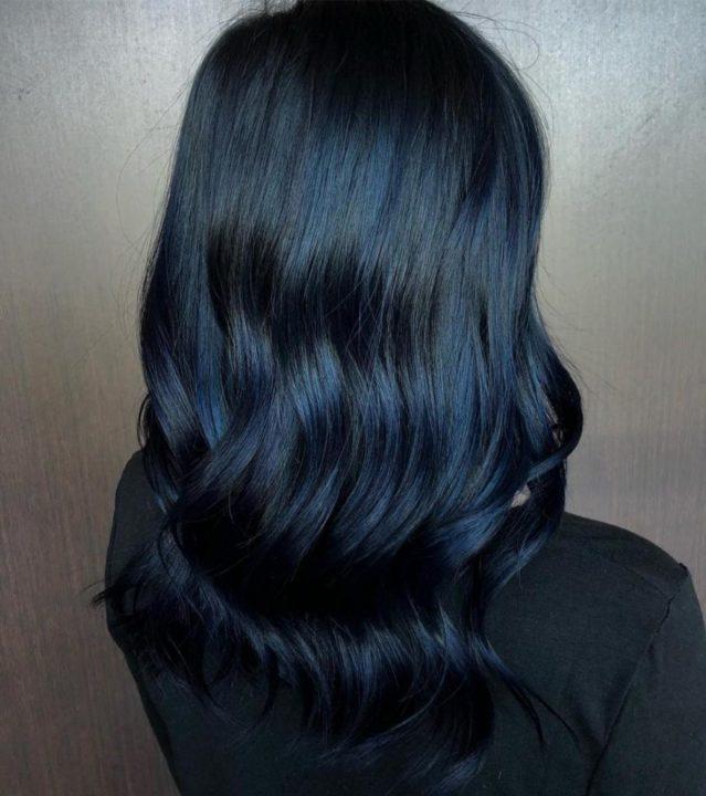 Même si vous avez des pointes fines et fourchues, la couleur noir bleuâtre leur conviendra parfaitement. N’ayez pas peur d’utiliser cette nuance, car la composition d’une telle peinture n’endommagera pas encore plus vos cheveux.