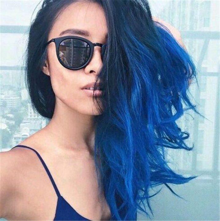 La couleur bleu-noir est parfaite pour les cheveux bouclés et raides. Vous pouvez facilement faire un style différent au moins tous les jours, changeant ainsi l’image et le style.