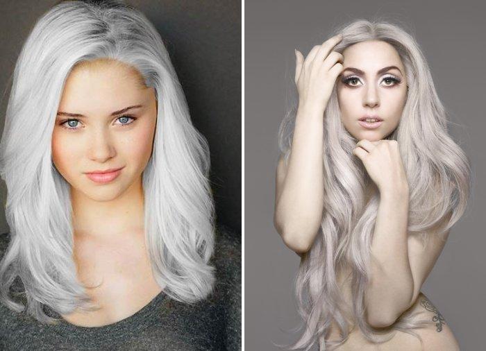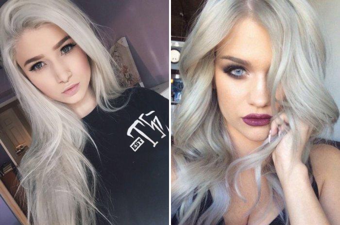 Ici, deux nuances s’entremêlent: platine et cendre. Ils donnent une belle harmonie et un jeu de couleurs, ce qui permet de créer l’image d’une beauté fatale. Le choix est très audacieux, audacieux et ne convient pas à tout le monde. Ici, il vaut mieux choisir cette teinte en fonction de critères psychologiques que de type de couleur.