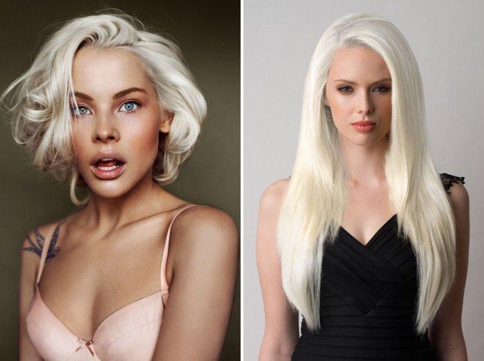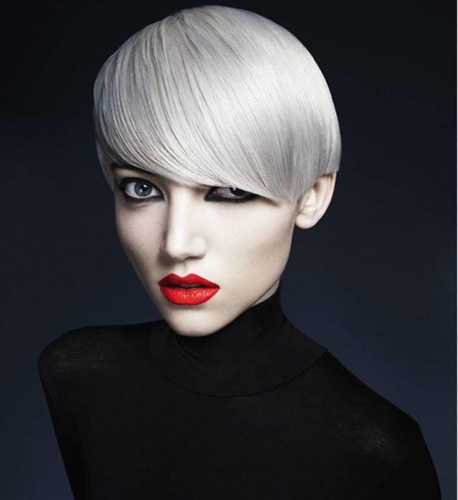 La couleur platine classique est presque blanche. C’est le plus brillant de toute la collection et c’est un choix brillant et audacieux pour toutes les longueurs de cheveux. Il est préférable de choisir une telle nuance pour les jeunes filles et les femmes mûres devraient la contourner.
