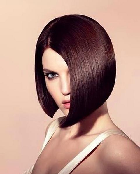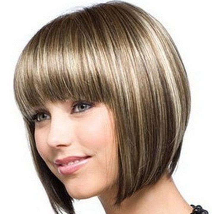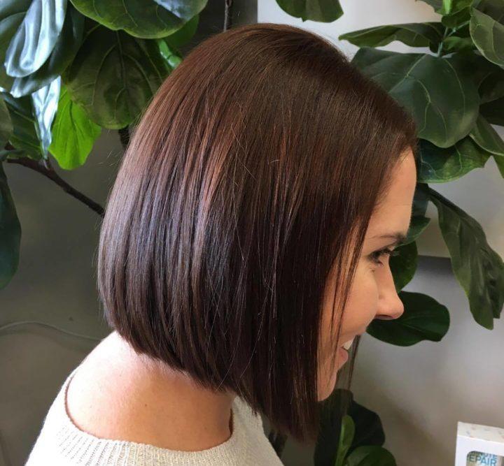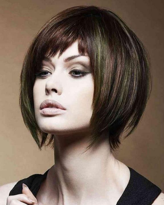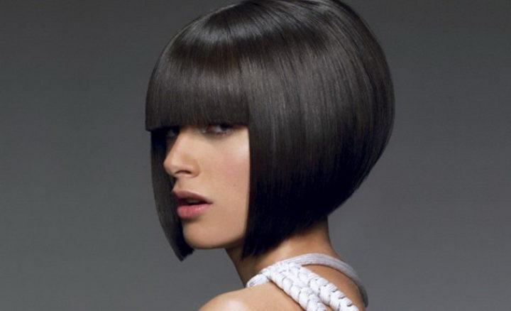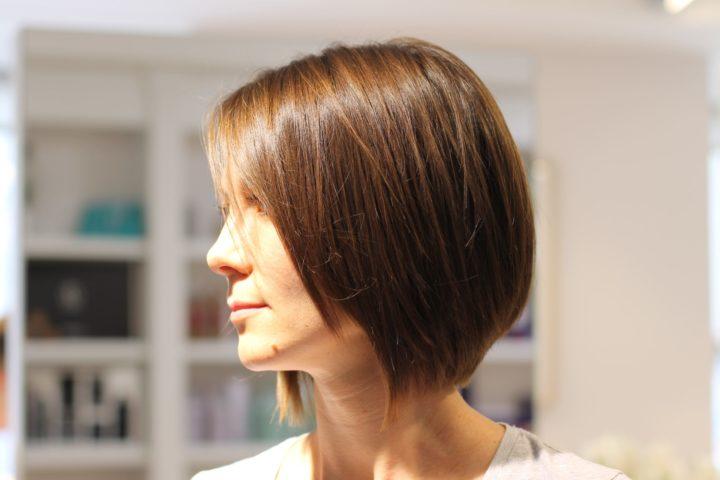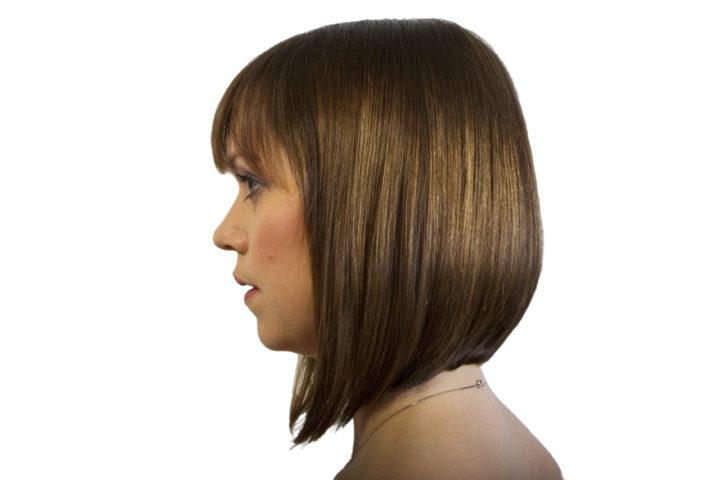 Bob-caret avec une frange oblique et une frange latérale