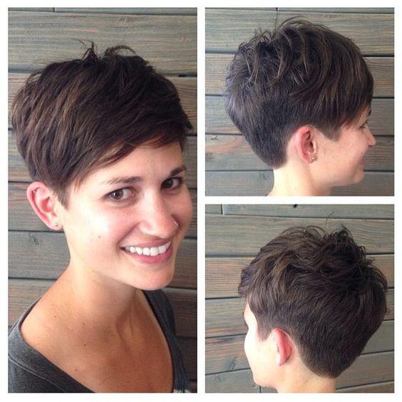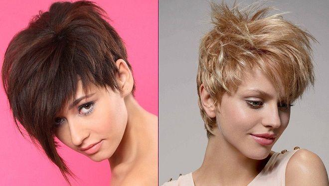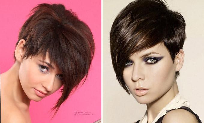 Lutin– une des options, une nuque très courte, vers le sommet de la tête, les cheveux s’allongent, passant en une longue frange, de préférence oblique, longue jusqu’au menton. Convient à tous les âges, facile à installer. Appliquer le gel sur cheveux secs et sécher dans un désordre chaotique, peut être coiffé sous un peigne rond.