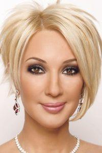 Carré– il est possible avec ou sans frange, coupe de cheveux classique, par rapport au visage, un côté doit être plus long que l’autre, expressif, il doit être soigneusement posé pour qu’il y ait des brins lisses légèrement recourbés vers l’intérieur.