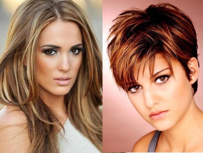 - Les coupes de cheveux doivent être luxuriantes, il n’est pas recommandé de se concentrer sur un visage étroit. Cheveux raides ou gélifiés, ainsi que des mèches déchirées – pas pour un visage étroit.
