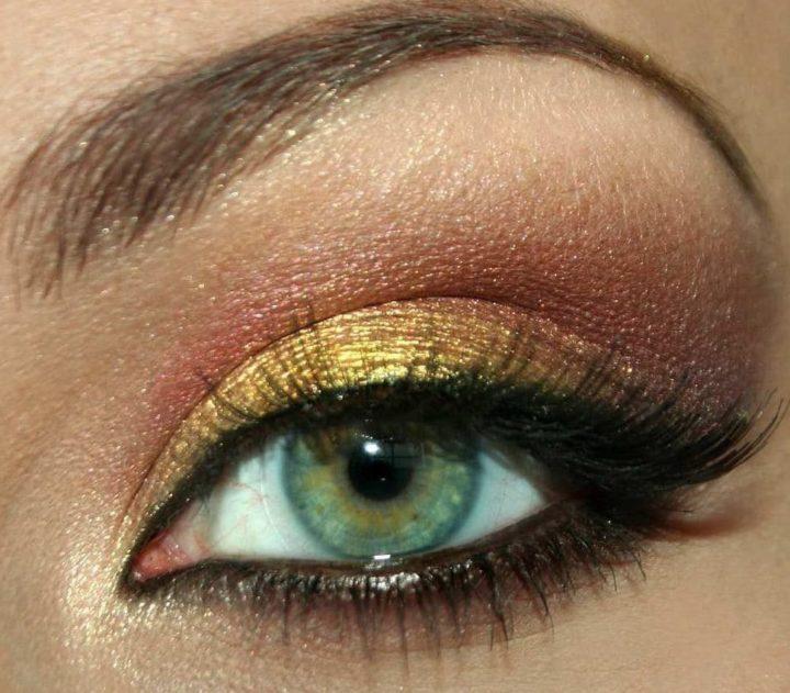 Le maquillage dans les tons dorés peut parfaitement compléter votre look de soirée ou votre tenue de fête. L’or est la couleur du luxe et de la richesse. Une application habile de fard à paupières, de flèches et de poudre bronzante sur votre peau vous permettra de devenir la reine de la soirée. Ci-dessous, vous découvrirez toutes les astuces du maquillage en or, ainsi que des idées de photos intéressantes pour l’appliquer.