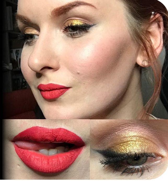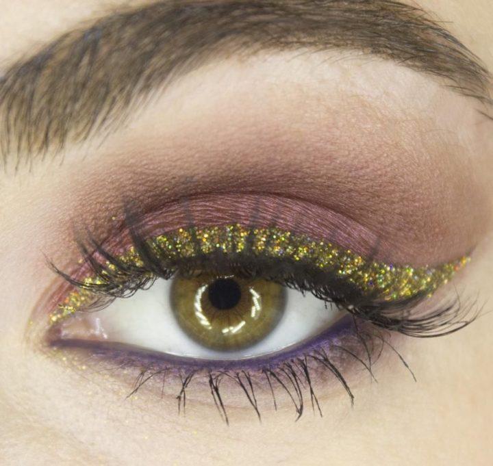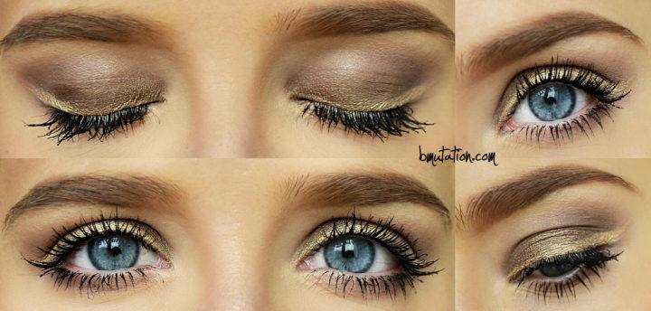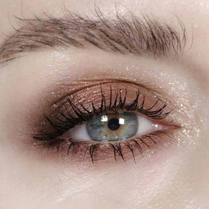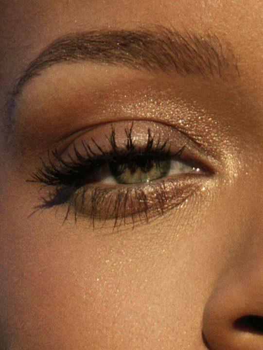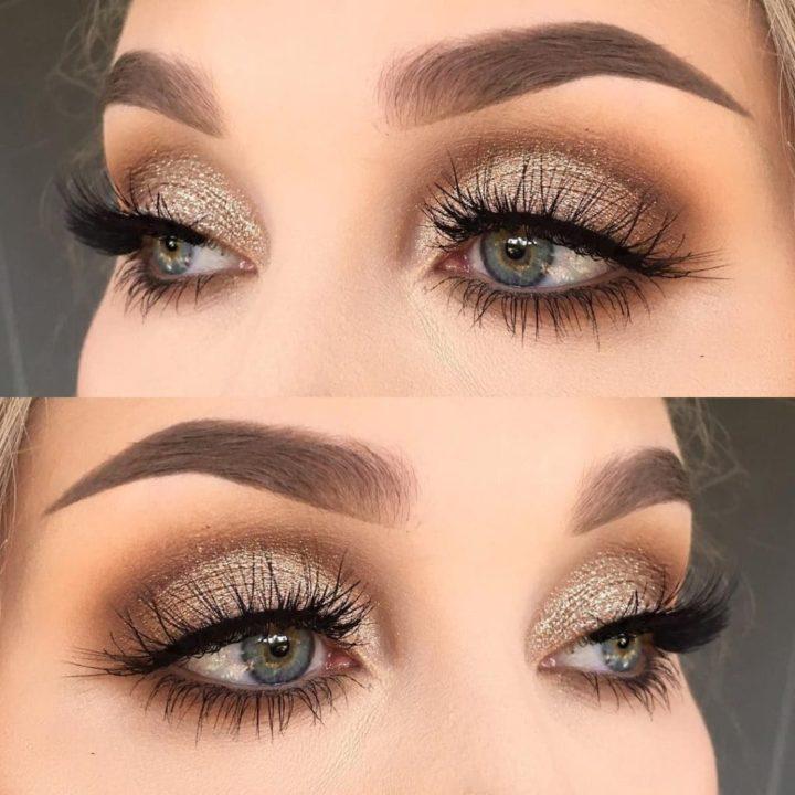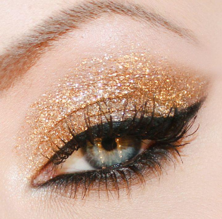 Les ombres dorées conviennent à toutes les couleurs des yeux, mais ici, il vaut déjà la peine de choisir les bonnes nuances. L’or peut être sombre et riche ou clair et aérien, presque invisible. Il existe des ombres à paupières scintillantes ou scintillantes qui peuvent parfaitement compléter votre look festif.