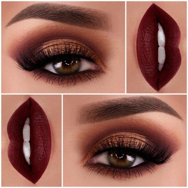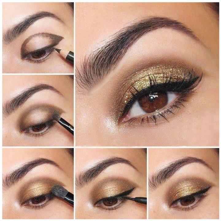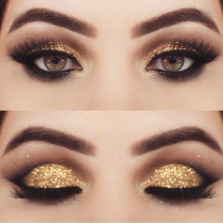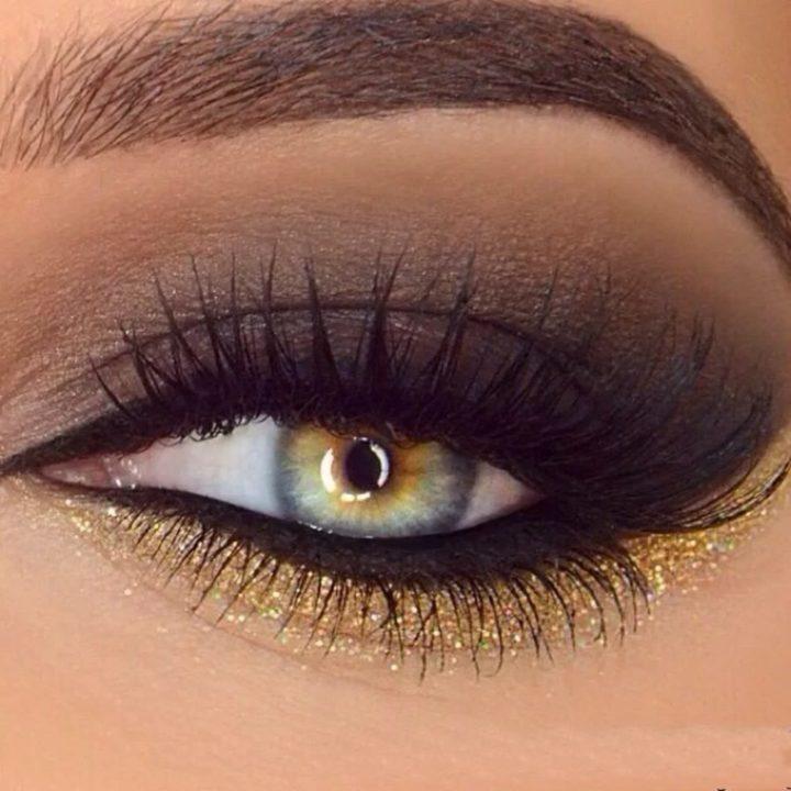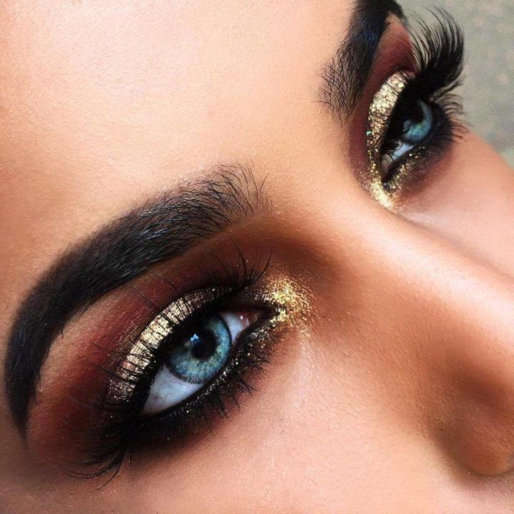 Le maquillage doré peut aussi être sombre. Il saura parfaitement compléter votre robe de soirée, et rendre votre look tout simplement irrésistible. Les fards à paupières riches en paillettes dorées ou paillettes vous permettront de créer un beau maquillage de vacances.