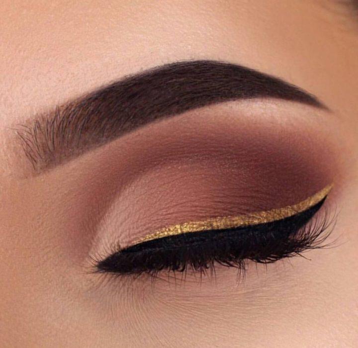 Les ombres à paupières nacrées ordinaires ou les options mates illumineront vos yeux au quotidien. Les ombres dorées sont magnifiquement combinées avec des flèches noires et de l’encre noire.