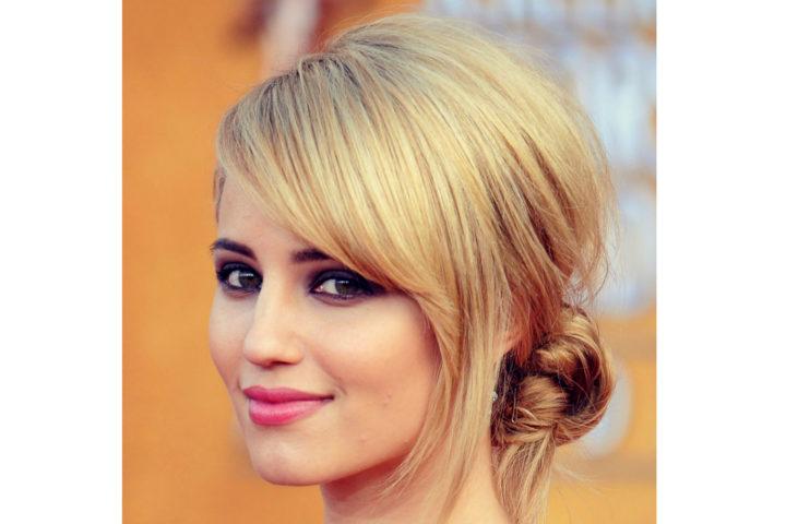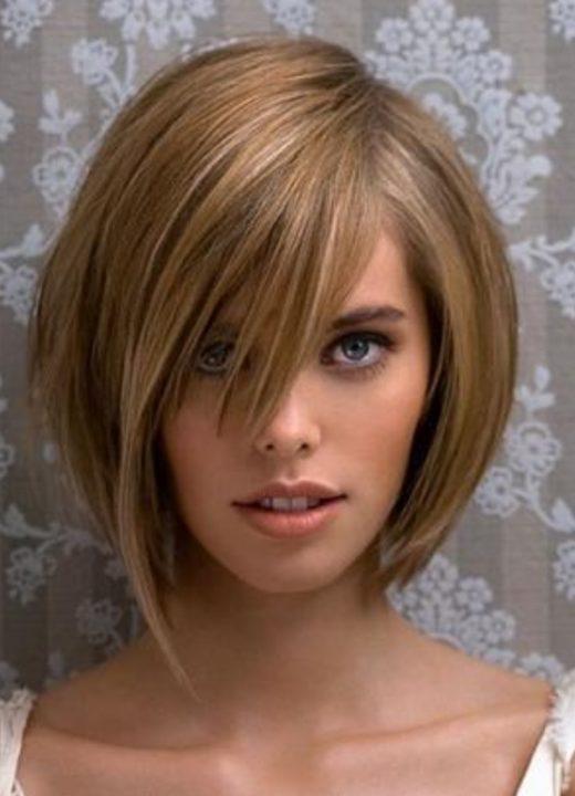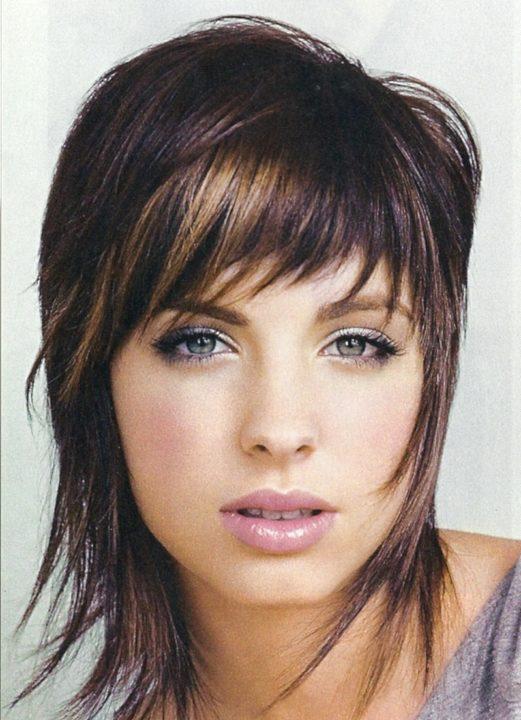 - Une frange oblique aidera à corriger les traits du visage, où elle adoucira un front et un menton massifs;
