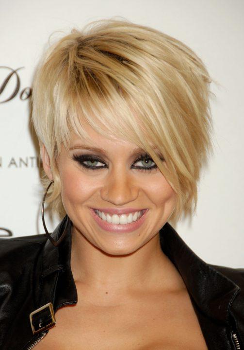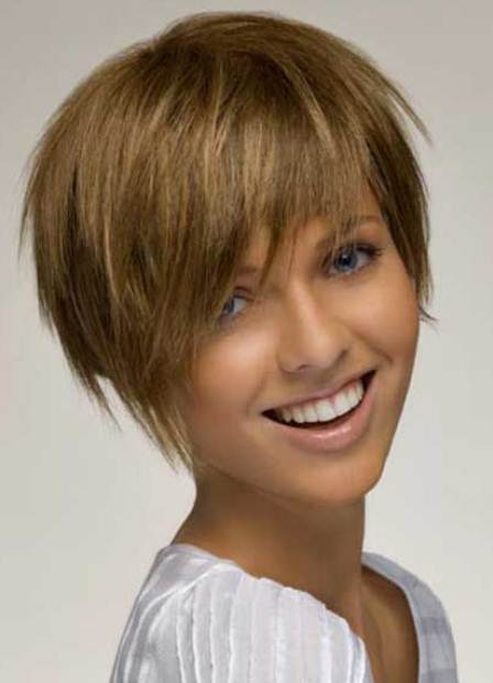 - Courte – Une frange oblique courte aidera à ouvrir la zone du front et sera parfaite avec des coupes de cheveux courtes telles que garcon, lutin, gavroche et autres. Les franges obliques courtes conviennent mieux aux femmes au type de visage ovale, ce qui est considéré comme le plus idéal et n’a pas besoin d’être corrigé.