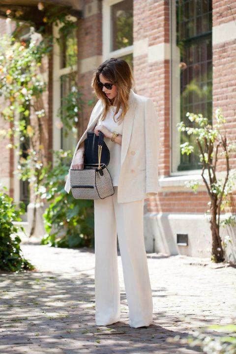 Les costumes sont un incontournable de la garde-robe des femmes depuis plus de 50 ans. Ils conviennent aux saisons froides et chaudes. Ils peuvent avoir une gamme claire avec des nuances sablonneuses, beiges, grises et laiteuses. Cette catégorie de couleurs permet un look élégant et austère.