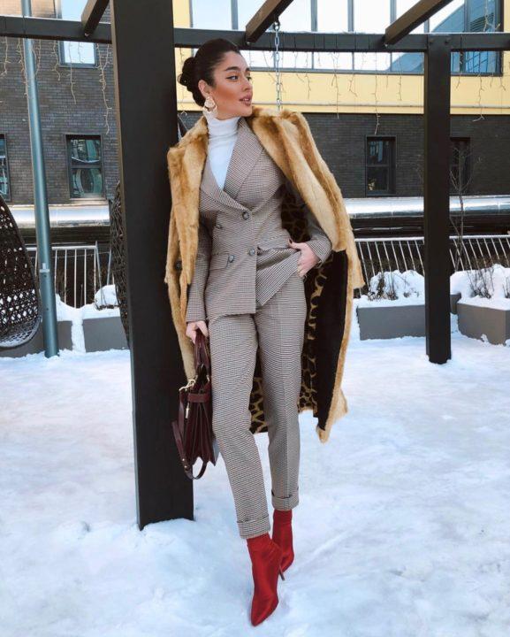 Assurez-vous de porter ces vêtements avec des écharpes, des gants et des bottes hautes avec ou sans talons. Les bottes doivent également être en cuir véritable, en daim ou en nubuck.