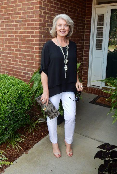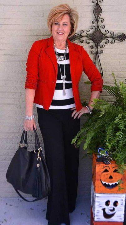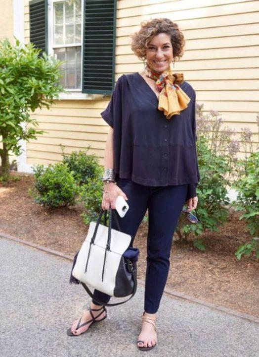 Les femmes plus âgées n’ont pas à cacher complètement leurs jambes. Les pantalons courts et les jeans sont une excellente solution pour créer un look beau et élégant. Essayez de faire correspondre votre haut dans une couleur unie avec votre pantalon. Avec cette méthode, vous allez créer un arc monochrome qui sera gagnant-gagnant.