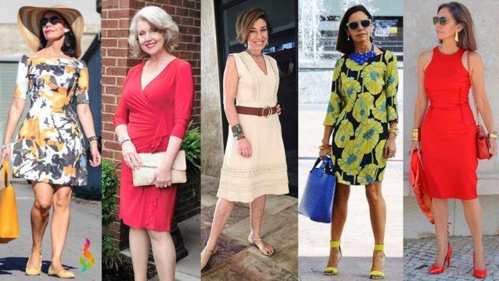Toute femme dans la cinquantaine devrait avoir au moins une paire de robes dans son placard. Le style de la robe est le plus souvent choisi plus droit et classique, où la longueur dépasse rarement le genou. Après tout, les robes trop courtes sont une option pour les jeunes qui ne semblera pas appropriée pour les femmes plus âgées.