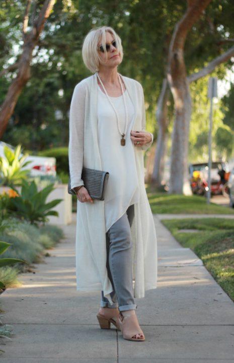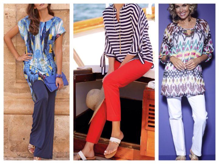 Des tuniques lumineuses, de longs cardigans aérés peuvent être combinés avec un jean droit dans une couleur bleue classique. Une autre excellente option au lieu d’un jean serait un pantalon blanc ou beige. N’ayez pas non plus peur des couleurs vives, en choisissant le bas ou le haut dans des couleurs riches et lumineuses.