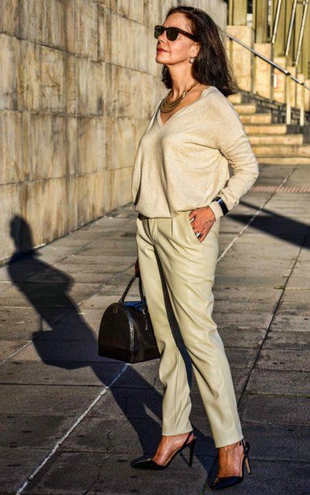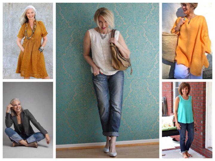 Haut foncé, bas clair ou vice versa – la base d’une image réussie pour les femmes de 50 ans et plus. La principale chose à retenir est que vous ne devez pas choisir des pantalons et des jeans trop serrés. Et aussi avec un ajustement trop bas.