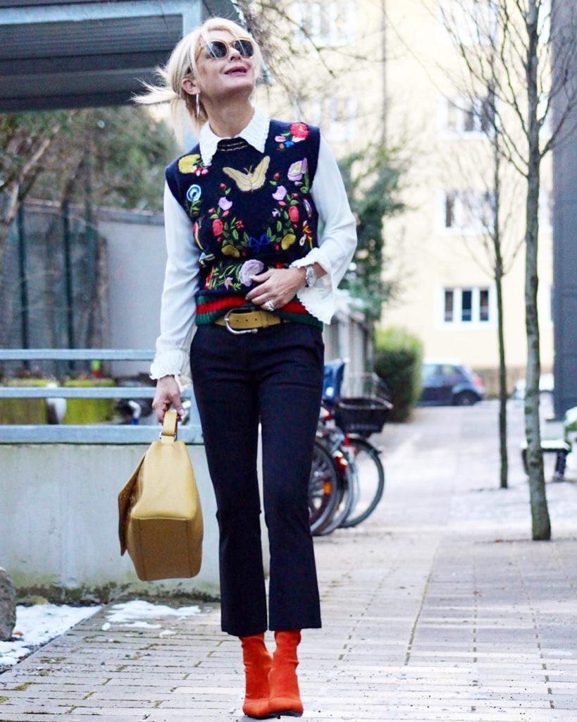 Les classiques sont toujours à la mode, donc pour un look à la mode, il vaut la peine de combiner des vêtements de style classique. Les costumes, que ce soit des pantalons ou des jupes, ont toujours l’air solide. Exactement quoi correspondre aux femmes d’âge. Les vestes allongées ajustées affinent la silhouette et les jupes droites ou les pantalons avec des flèches rendront les jambes gracieuses. Choisissez calmement les nuances, les panachées ne conviendront pas. Et aussi une combinaison élégante d’un costume sera une chemise rentrée ou pour la libération. La longueur du pantalon est autorisée, n’importe quelle jupe, de préférence sous le genou. Les femmes actives aimeront les costumes de sport, choisissez des modèles à coupe droite.