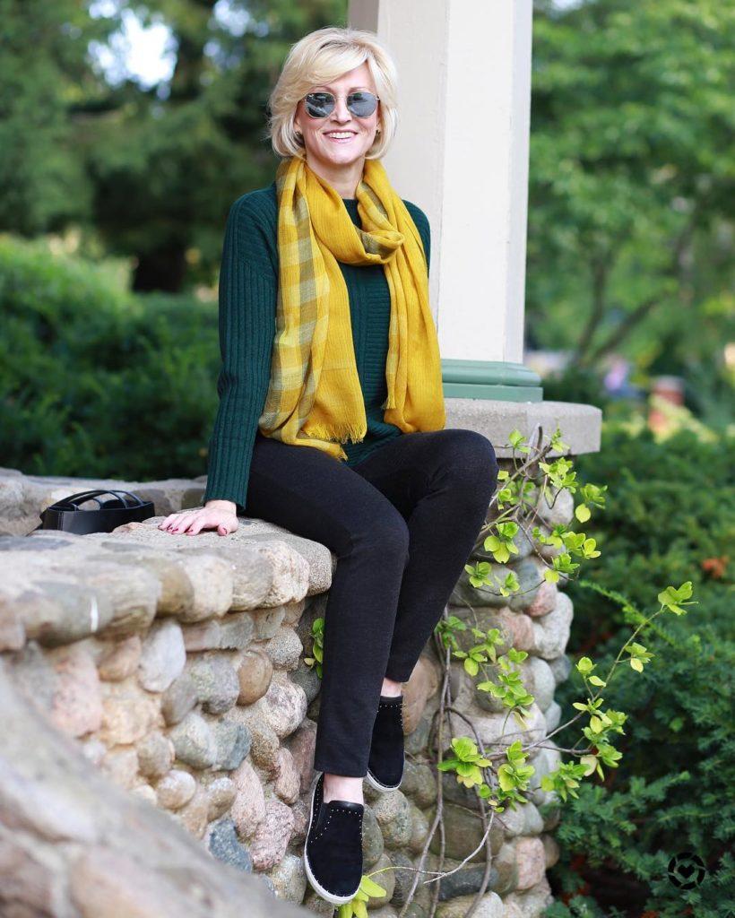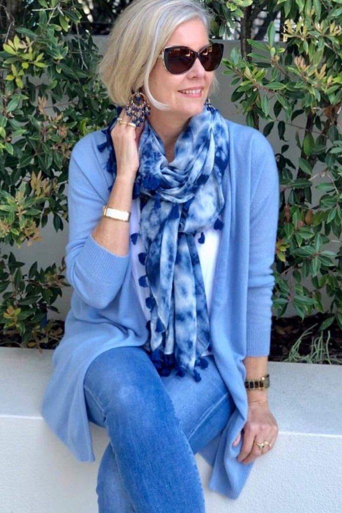 Une écharpe est un accessoire polyvalent qui aidera à cacher l’ancienne peau du décolleté et à diluer élégamment l’image. C’est aussi un accessoire polyvalent qui peut être noué sur la tête de manière originale.