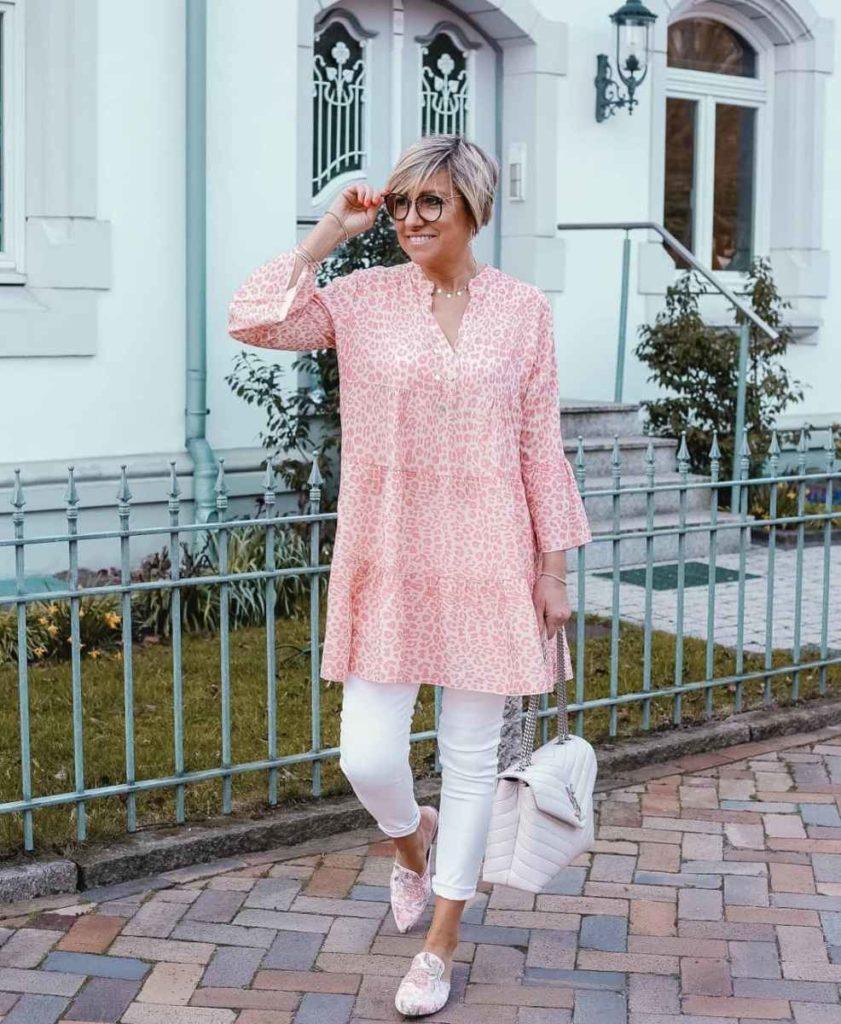 Dans la garde-robe des femmes, le rôle de base est joué par les chemisiers, les t-shirts, les chemisiers. Ils sont polyvalents car ils sont faciles à assortir avec n’importe quel fond. Et comment il est rentable de faire cela pour que l’image soit légère et concise, nous examinerons plus loin. Tout d’abord, parlons des styles de chemisiers, de t-shirts, etc. Ils doivent être coupés lâches ou droits pour que les défauts de la figure ne ressortent pas. Dans les modèles actuels, un décolleté fermé, des manches 3/4. Évitez les produits transparents et les inserts inutiles à votre âge. Privilégiez les modèles monochromes laconiques, et non un imprimé coloré. Le motif est lumineux et le décor rendra le look ridicule pour votre âge.