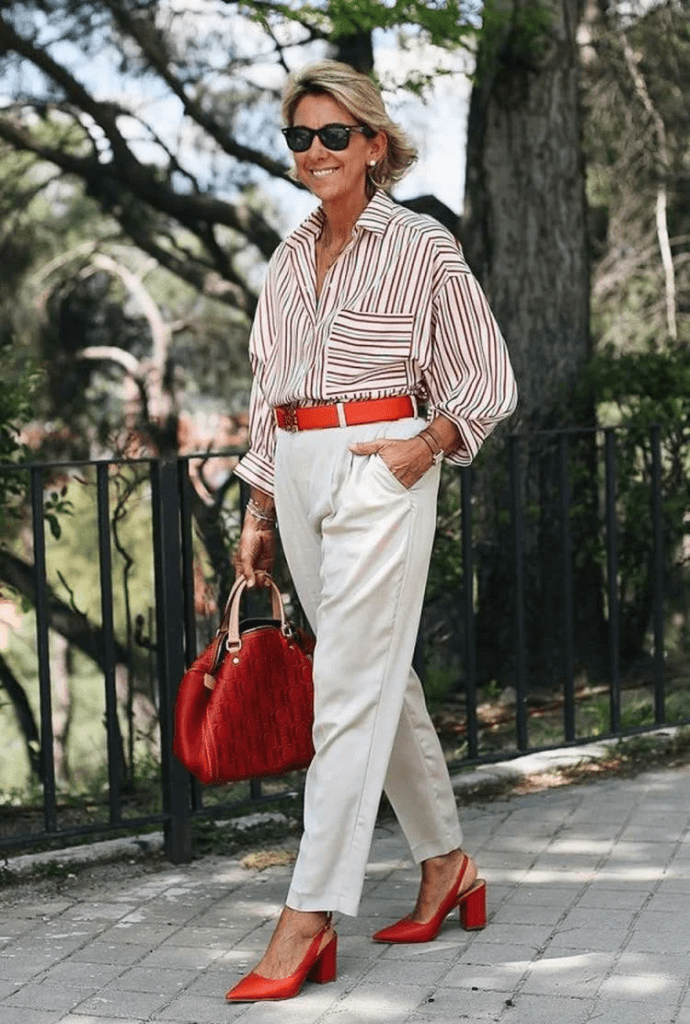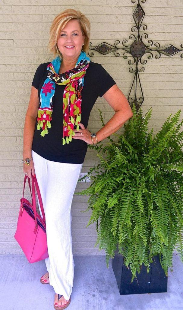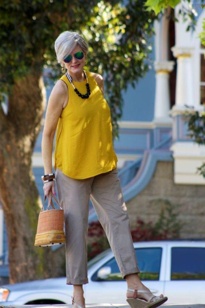 Le pantalon est l’une des pièces de base d’une garde-robe élégante. Et pour les femmes de plus de 60 ans, elles sont tout simplement nécessaires. Grâce à une grande variété de styles, ils s’agenceront facilement à n’importe quel look. Parlons maintenant plus en détail des styles. L’ajustement doit être moyen à élevé pour éviter les rides inutiles. Le modèle de coupe droite est pertinent. Un tel modèle s’adapte toujours parfaitement à n’importe quelle figure et cache également les défauts. Ils peuvent être portés avec des chemisiers, des t-shirts et d’autres hauts.
