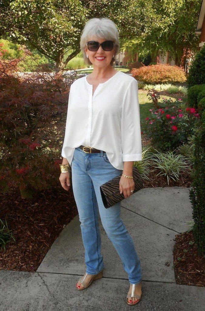 Les joggeurs sont un modèle populaire et élégant qui sera un excellent complément à l’image d’une femme mûre. Un tel pantalon rendra non seulement la silhouette plus gracieuse, mais masquera également le ventre grâce aux accrocs à la taille. Si vous avez des jambes minces, vous pouvez facilement vous offrir un pantalon fuselé en combinaison avec un haut de style libre. Comme pour les jeans confortables préférés de tous, les décors colorés et les modèles déchirés doivent être évités ici. Et le meilleur choix serait un jean droit ou légèrement skinny.